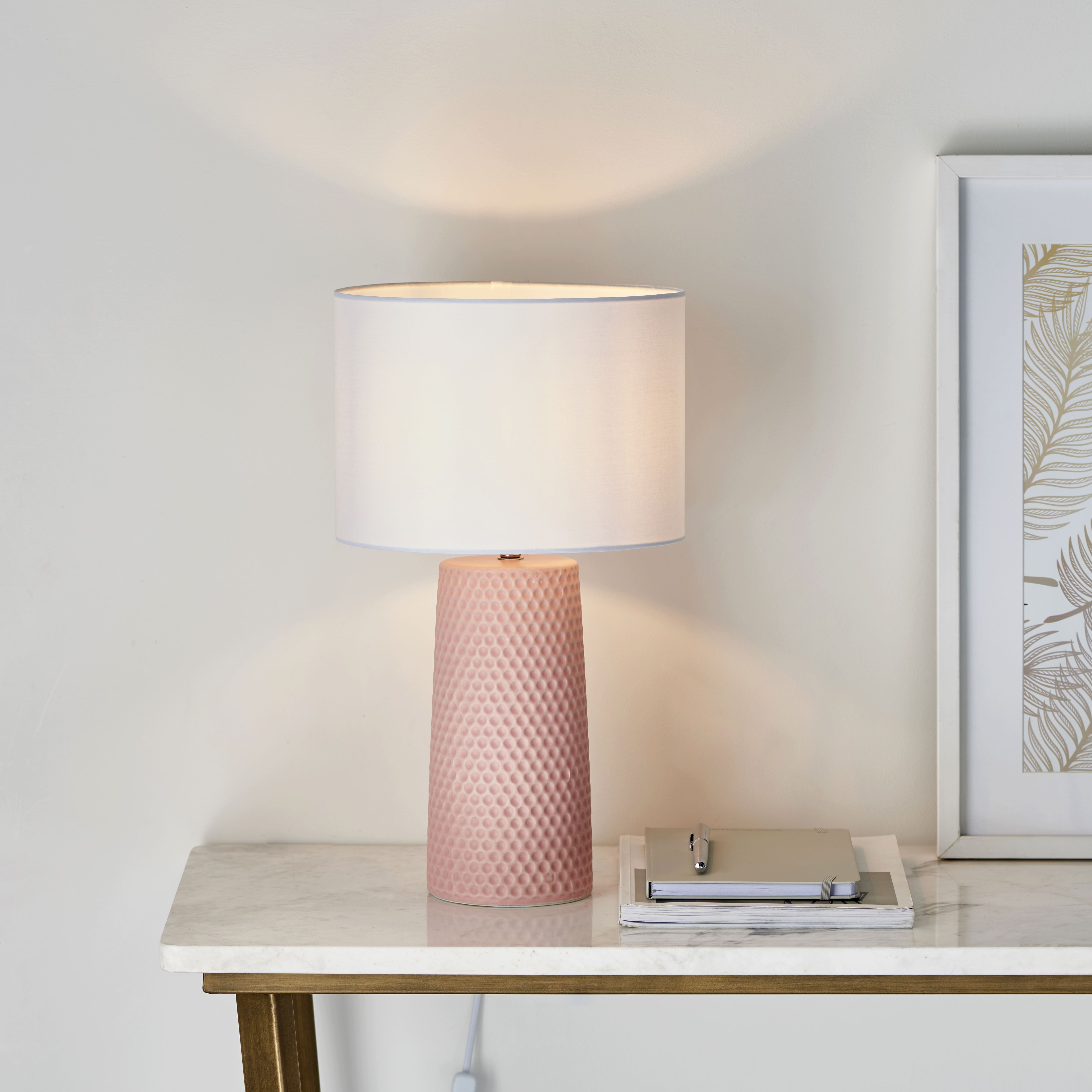 Blush pink table lamp with white fabric shade. 14cm tall tapered in jute. You can also refresh your working space or home office with our desk lamps, including touch lamps and lamp tables for maximum efficiency. It'll even help light up the corner of a. We believe that lighting is like jewelry for your home.
